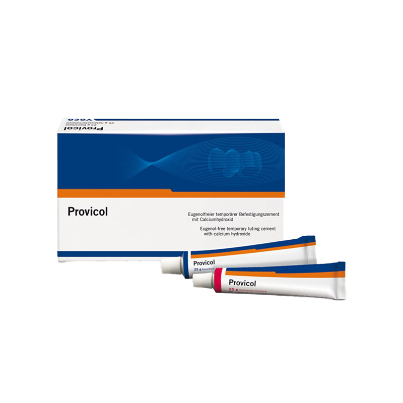 Provicol یک سیمان بدون اوژنول با هیدروکسید کلسیم بر پایه کامپوزیت است که پردازش آن آسان است و تاثیری بر پخت مواد پرکننده و تثبیت کننده ندارد.