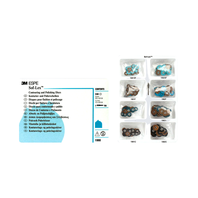 کیت دیسکهای Sof-Lex مدل 1980 محصول شرکت 3M یکی از ابزارهای پیشرفته در فرایند پرداخت و صیقلدادن ترمیمهای دندانی است. این سیستم با طراحی کمپروفایل و رنگبندی کدگذاری شده، سرعت و دقت کار را افزایش میدهد و امکان دستیابی به سطحی با درخشش بالا و زیبایی طبیعی را فراهم میسازد.