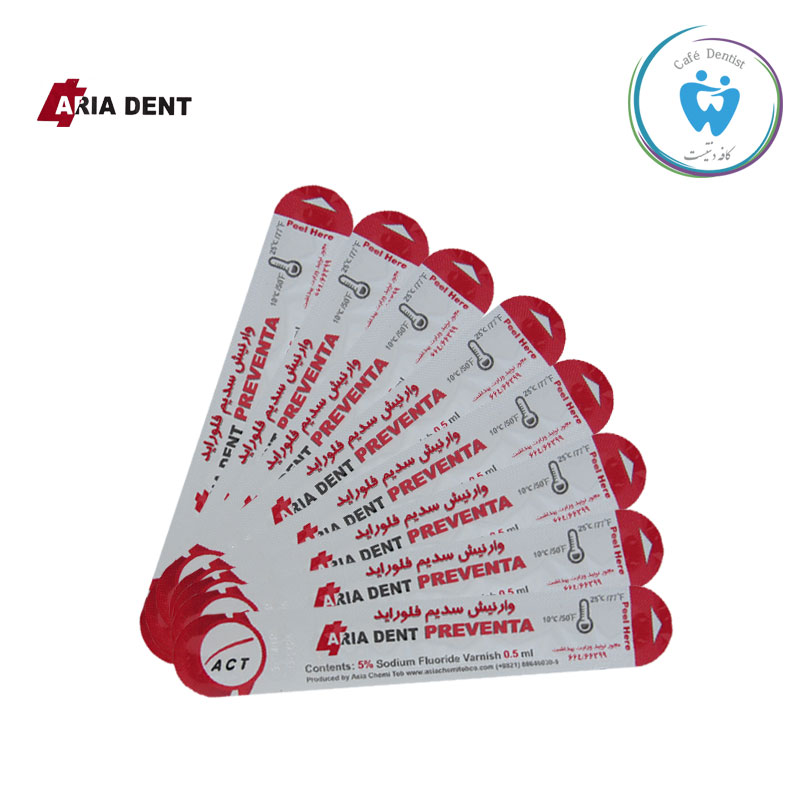 وارنیش فلوراید آریا دنت محصول کشور ایران حاوی سدیم فلوراید بوده و بیشتر برای کودکانی مورد استفاده قرار میگیرد که ریسک بالایی از پوسیدگی دارند. همچنین افرادی که به صورت موروثی جنس دندان خوبی ندارند و یا کودکانی که بیش از حد از پستانک و شیشه شیر استفاده می کنند نیز مورد استفاده قرار میگرد. نحوه استفاده این محصول بدین گونه است که ابتدا مواد را به کل دندان آغشته کرده وبگذارید تا 5 دقیقه باقی بماند. سپس پس از آن تا 3 ساعت به جز آب چیزی میل نفرمایید. لازم به ذکر است که در آن روز به هیچ عنوان مسواک نزنید و از خوراکی های سفت استفاده ننمایید. این محصول باید در جای خشک و خنک نگهداری شود.