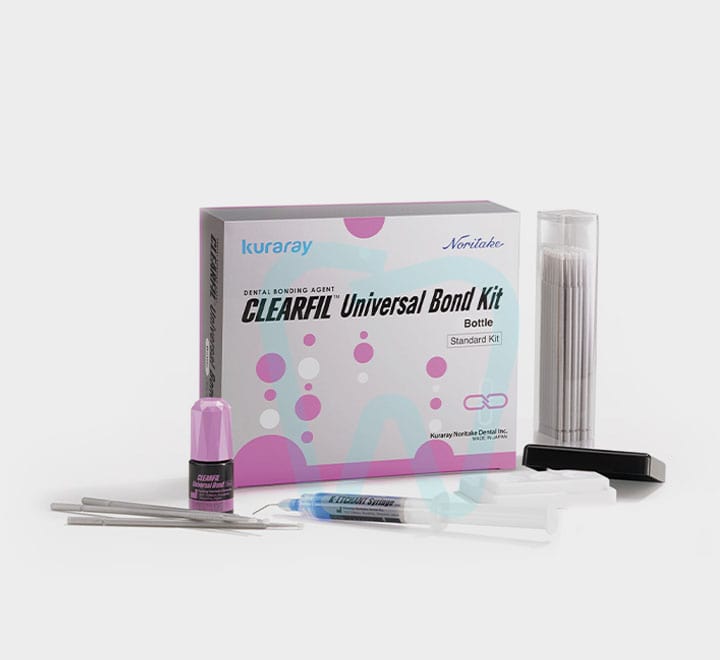 از آنجایی که روشهای ترمیم دندان بهطور مداوم بهینهسازی میشوند، بیشتر دندانپزشکان بهدنبال بهکارگیری موادی هستند که هم پاسخگوی طیف گستردهای از کاربردها باشند و هم با استفاده از آنها راحتی را در کنار کیفیت بالا تجربه کنند؛ کیت یونیورسال باند کلیرفیل کوراری یکی از همین محصولات است: کیتی شامل 1 بطری 5 میلیلیتری باند یونیورسال، 3 سرنگ حاوی ژل اچ و ابزارهایی که برای میکس کردن و اجرای باندینگ مورد نیازند.