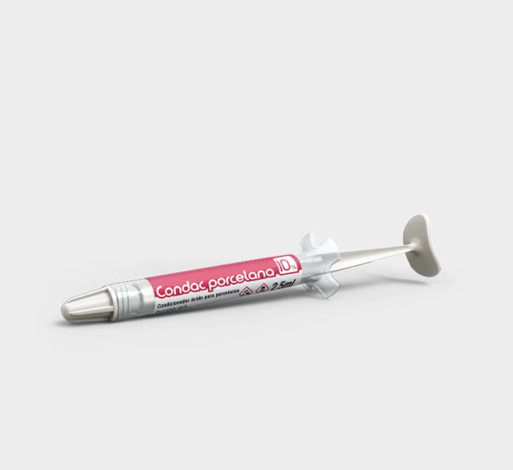- همچنین میتوان از این محصول برای اچ کردن پرسلن با ویسکوزیتی پایین و به صورت ژل استفاده کرد. اچ کردن روکش دندان به وسیلهٔ اسید هیدرو فلوریک به عنوان افزایش چسبندگی ترمیم انجام میشود. در حقیقت اچ کردن سطح دندان برای ترمیم، به دلیل چسبندگی بهتر آن است.