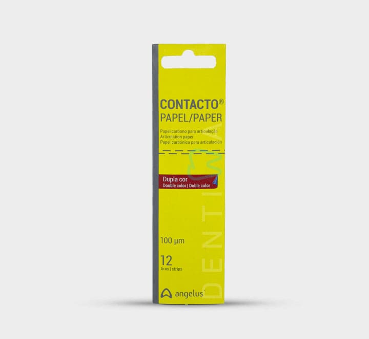 کاغذ آرتیکولاتور مدل Contacto Paper برند برزیلی انجلوس، به دو شکل نوار مستقیم و نوار نعلی شکل در فروشگاه دنتیوا به فروش میرسد. هر بسته این محصول دارای 12 برگ بوده و بسیار به صرفه است.