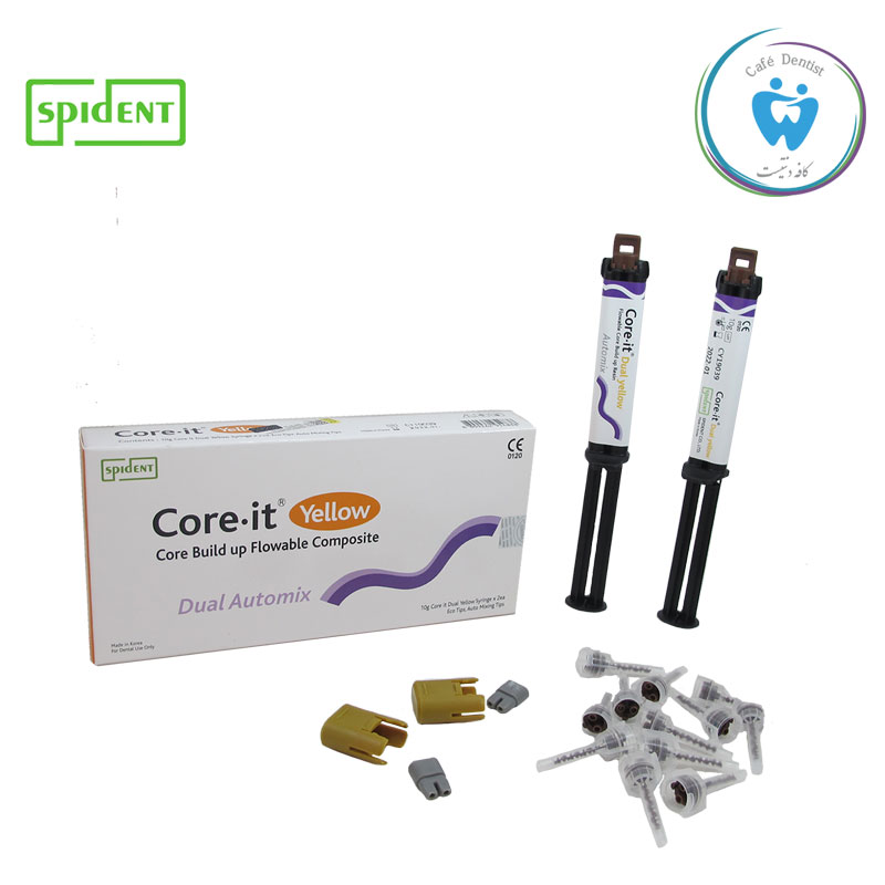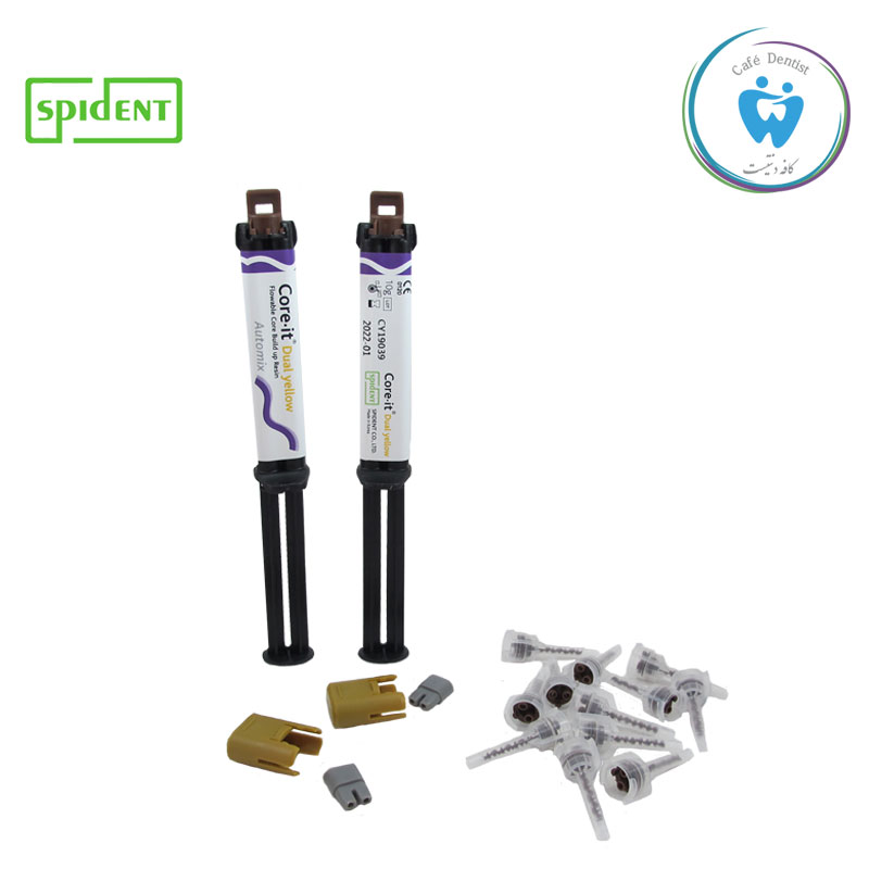 کور بیلداپ دوال کیور اسپیدنت یک باند شیمیایی بسیار محکم است وماده ای کامپوزیتی مناسب برای ترمیم و ساختن و شکل دهی آسان کر و ایجاد یون هایی شبیه به عاج دندان می باشد ومیتواند به راحتی و آسانی فایبر پست را تنها با یک ماده به شکل یک دست فقط در یک جلسه بچسباند از ویژگی های این محصول میتوان به قابلیت فلوپذیری بالا و کور بیلداپ ،دوال کیوربودن آن اشاره کرد همان طور که گفته شد این محصول دارای قدرت بسیار بالا و عالی برای چسبندگی است و میتواند فایبر پست را با کوربیلد آپ بسیار خوب و عالی مطابق کند وهمچنین دارای ویژگی فیزیکی بسیار خوب است که میتواند به آسانی کارگذاری شود واز سایر خصوصیت این محصول میتوان به زیست سازگاری عالی آن با Corer اشاره کرد .