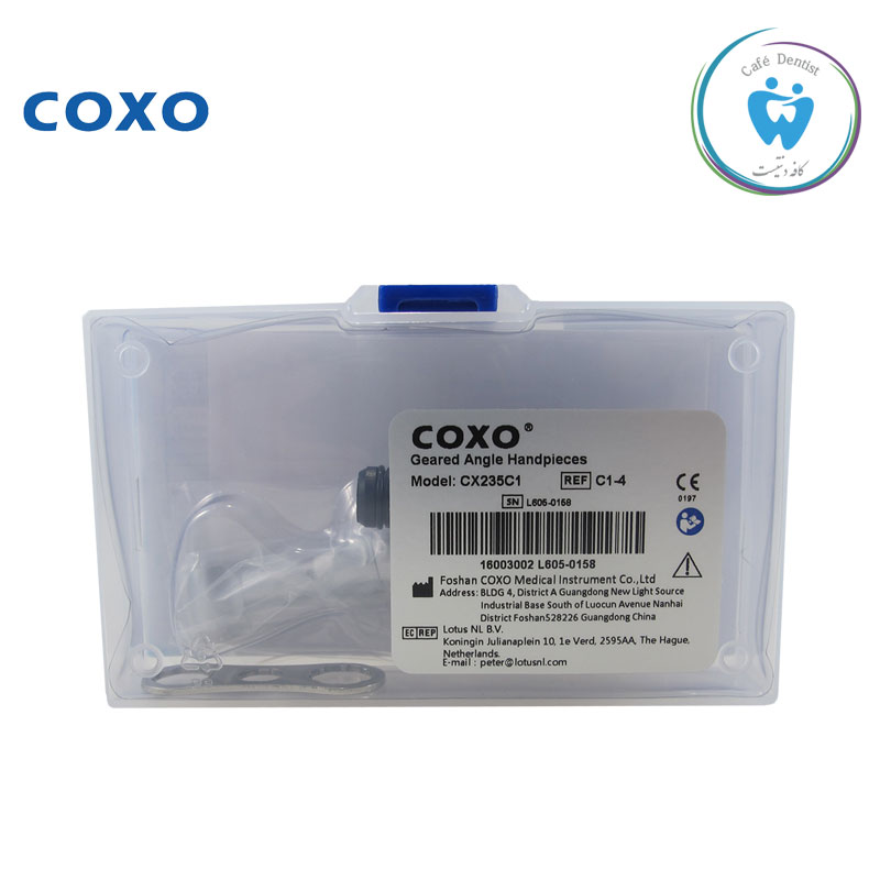 آنگل در دندانپزشکی همانند توربین برای تراش، برش و پالیش دندان مورد استفاده قرار می گیرد. در واقع تنها تفاوت آنگل و توربین در مقدار سرعت چرخش آن می باشد. آنگل ها نسبت به توربین ها سرعت پایین تری دارند و از طریق ایرموتور نیروی جنبشی به آنها انتقال پیدا می کند. آنگل ها به دو نوع پوش باتن و ناخنکی تقسیم بندی می شوند. تفاوت این دو آنگل، در نوع آن برای در آوردن فرز می باشد. آنگل پوش باتن یک دکمه کوچک در پشت آن وجود دارد اما درآنگل ناخنکی، اهرمی شبیه به ناخن تعبیه شده است که برای جاگذاری فرز باید از آن استفاده نمود. به صورت کلی کار با آنگل پوش باتن نسبت به آنگل ناخنکی برای جاگذاری فرز آسان تر می باشد. آنگل پوش باتن کوکسو بدنه ای از جنس آلیاژ آلمینیوم دارد و سرعت چرخش آن حدود 40 هزار دور در دقیقه می باشد. سیستم خنک سازی این آنگل آب از داخل بوده و جنس بلبرینگ آن سرامیکی است.