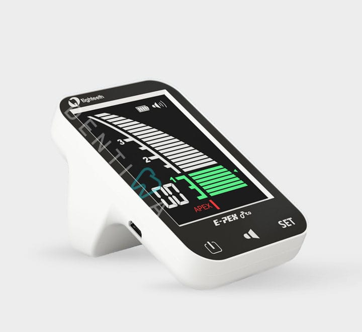 خرید اپکس فایندر ایپکس پرو تضمینکنندهٔ سرعت، آسانی، دقت و کیفیت درمان ریشه است: ابزاری کارآمد که بیمار را نیز از شر بروز پوسیدگیها یا آسیبهای بعد و حین عصبکشی در امان نگه میدارد! E-Pex Pro از قابلیت اندازهگیری چندفرکانسی برخوردار است. بر همین اساس، نهتنها در محیطهای خشک که در حضور خون، رطوبت، پالپ زنده یا مرده، عفونت و RC Prep هم میتواند طول کانال ریشه را با دقتی بسیار بالا اندازه بگیرد: یک ویژگی بسیار مهم که بهخصوص در هنگام استفاده از این دستگاه بههمراه موتور روتاری بهدردتان خواهد خورد، چراکه این اپکس لوکیتور را میتوان به کمک یک سیم رابط به روتاری E-Connect Pro متصل کرد تا همزمان با شکلدهی کانال به تعیین طول آن بپردازد. ایپکس پرو ایتیس از سیستم آلارمی برخوردار است که اشتباهات در اندازهگیری را بهاطلاع دندانپزشک خواهد رساند. این محصول همچنین از هشدار صوتی برای هدایت کار دندانپزشک در حین حفر و فرمدهی به کانال ریشه استفاده میکند. در کنار این موارد، Eighteeth E-Pex Pro Apex Locator به قابلیت کالیبراسیون خودکار نیز مجهز است و میتواند با توجه به شرایط درمان، بهینهترین تنظیمات را اعمال کند.