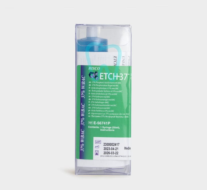 این محلول حاوی اسید فسفریک ۳۵٪ (Uni-Etch) و ۳۷٪ (Etch) به صورت نیمهژل و بنزالکونیوم کلراید (آنتی باکتریال) است. اسید فسفریک 35% که ویسکوزیته بالایی دارد و BAC موجود در آن برای اچ لبههای انامل هنگام باندینگهای Self-Etch نیز به کار میرود. اسید اچ بیسکو یکی از انواع اسید اچهای موجود در بازار است که بهصورت ژل بوده و کار با آن برای دندانپزشکان بسیار راحت و ساده است.