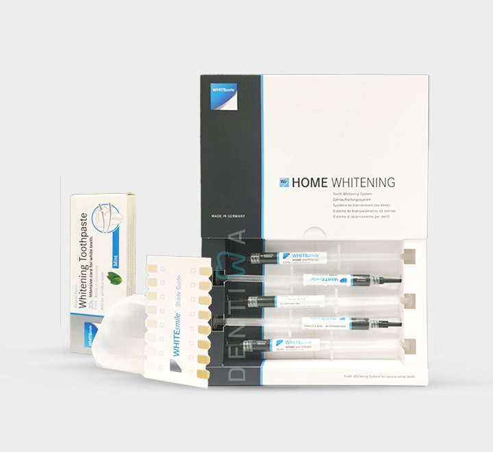 خرید کیت بلیچینگ هوم وایت اسمایل در دو غلظت 16 و یا 22 درصد کاربامید پروکساید را با ما تجربه کنید. دنتیوا این محصول ساخت آلمان را با ضمانت اصالت کالا بهفروش میرساند و علاوهبر ارسال آن در سریعترین زمان ممکن، آماده است تا درصورت وجود هرگونه اشکالی در کالای دریافتی، ظرف 7 روز کاری آن را باز پس بگیرد. این کیت شامل سرنگهای 3 میلیلیتری مادهٔ سفیدکنندهایست که طعم نعنای تازه میدهد و فرمولاسیون منحصربهفرد آن باعث شدهاست تا با وجود تأثیر فوقالعادهاش در تغییر رنگ دندانها، باعث ایجاد حساسیت نشود. در کنار این ژل بلیچینگ، یک ژل ضدحساسیت حاوی نیترات پتاسیم، فلوراید و زایلیتول در کیت Home Whitening وایت اسمایل گنجانده شدهاست که با طعم مطبوع و میوهایاش برای بازگرداندن مواد معدنی به دندانها و جلوگیری از پوسیدگی آنهاست. از دیگر اجزای کیت وایت اسمایل، 2 عدد شیت ترموفرمینگ که برای ساخت قالب دندانهای شخص در لابراتوار مناسباند و یک تری باکس است. درنهایت هم باید به جالبتوجهترین عضو این مجموعه اشاره کرد: خمیردندان سفیدکنندهٔ 75 میلیلیتری وایت اسمایل که برای استفادهٔ روزانه جهت حفظ سفیدی دندانهاست، سایندگی کمی دارد، از بروز حساسیت بعد از بلیچینگ هوم پیشگیری میکند و تضمینکنندهٔ سلامت لثه و دندان است.