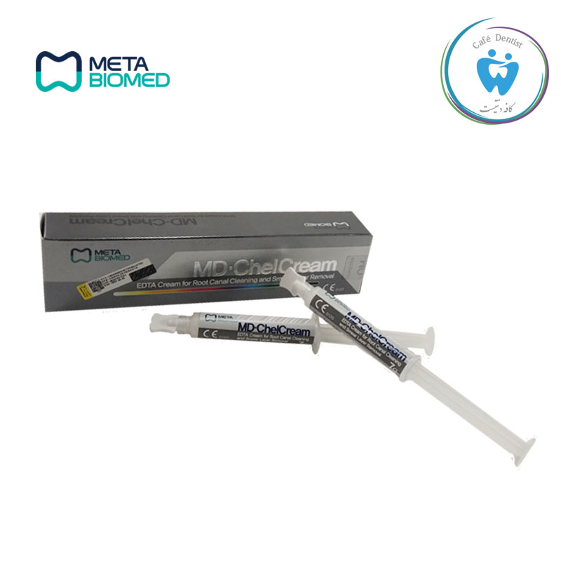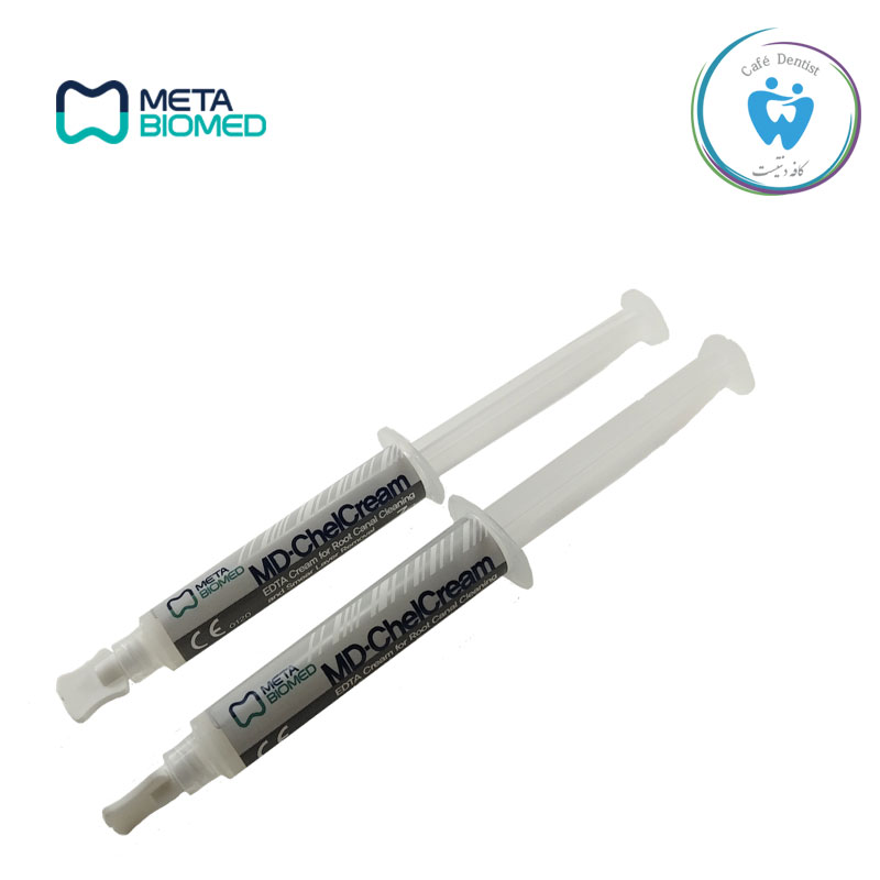 - شستشوی دهان با ماده سدیم هیپوکلریت برای خارج کردن و شستن MD-ChelCream