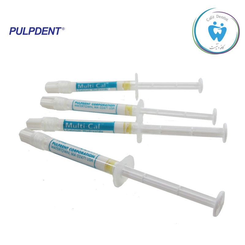 خمیر کلسیم هیدروکساید مولتی کل پالپ دنت مناسب برای درمان ریشه و درمان ریشه در دندان های شیری است و ماده ای برای پرکنندگی موقت کانال برای پالپ کپینگ ، پالپال کورتاژ و پالپوتومی و کویتی لاینینگ و پالپ کپینگ غیرمستقیم است و جهت درمان بخش های نکروز وشکستگی های التهابی دندان بسیار کاربردی است و برای پالپ کپ،ترمیم کانال،عصب کشی،ترمیمی عاج دندان،انسداد اپیکال بسیار مورد استفاده میبشد و همچنین برای درمان ریشه و ممانعت از گندزدایی مورد استفاده قرار میگیرد و خمیر کلسیم هیدروکساید مولتی کل پالپ دنت به طور موقتی کانال ریشه را پوشش می دهد و در کل لازم به ذکر است که Multi-Cal یک خمیر هیدروکسید کلسیم نرم و خامه ای شکل است که برای آماده کردن تمامی اقدامات بالینی که در آن باید از هیدروکسید کلسیم استفاده شود، تولید شده است، باید مورد توجه قرار بگیرد که این محصول آبسه ها و ضایعات پری اپیکالی را معالجه میکند و نیز اپکسیفیکیشن را تحریک می کند.این خمیر دارای ویژگی Non-setting است که به آسانی به وسیله ی فایل و ایریگیشن حذف می شود.از ویژگی های این محصول میتوان به رادیواپاسیتی بالا آن اشاره کرد همچنین این محصول دارای خاصیت ضدباکتری است و پایداری طولانی مدت دارد و دارای pH بیشتر از 12 است.