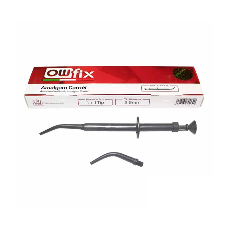 آمالگام کریر پلاستیکی اوفیکس (Owfix Plastic Amalgam Carrier) ابزاری است مخصوص دندانپزشکان برای جابجایی و انتقال آمالگام به داخل حفره دندان (پس از آمادۀ کردن مایع و فلز) با دقت بالا و کنترل بیشتر. این نوع کریر از پلاستیک مقاوم ساخته شده و قابل استریل شدن در اتوکلاو است.